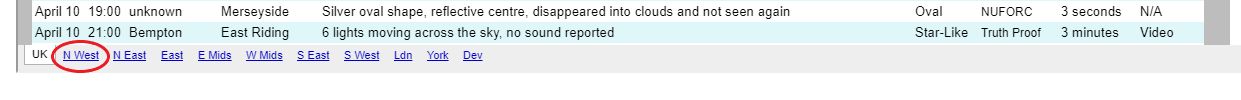 The main page shows all the sightings reported in the United Kingdom. If you scroll to the bottom of the page there are tabs for the different regions of the UK so you can narrow the database down to a specific area for more local sightings (Dev tab includes sighting reports in Wales, Scotland and Northern Ireland).